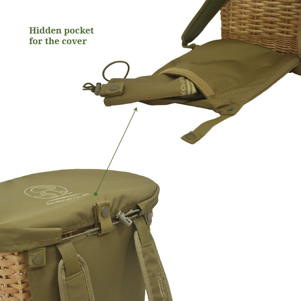 - Multifunkční design: Po odepnutí poklopu, který můžete schovat do "tajné" kapsy v polstrování zad a povytažením popruhů, lze batoh snadno nosit jako košík. Díky přiměřenému rozměru je možné batoh takto nosit i delší dobu.