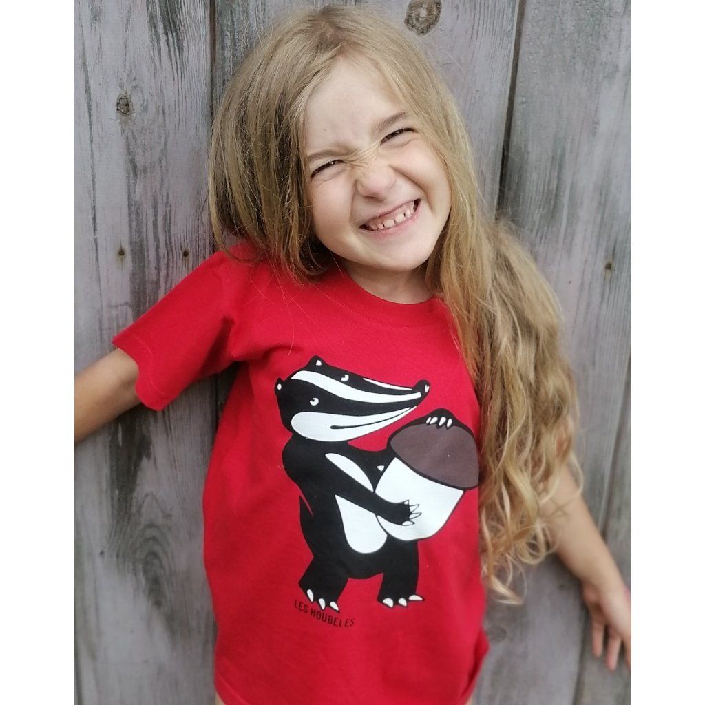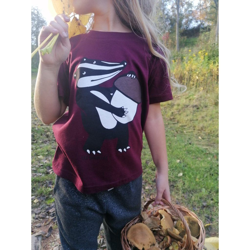 Hravý potisk s jezevcem potěší každého houbaře, malého i velkého.