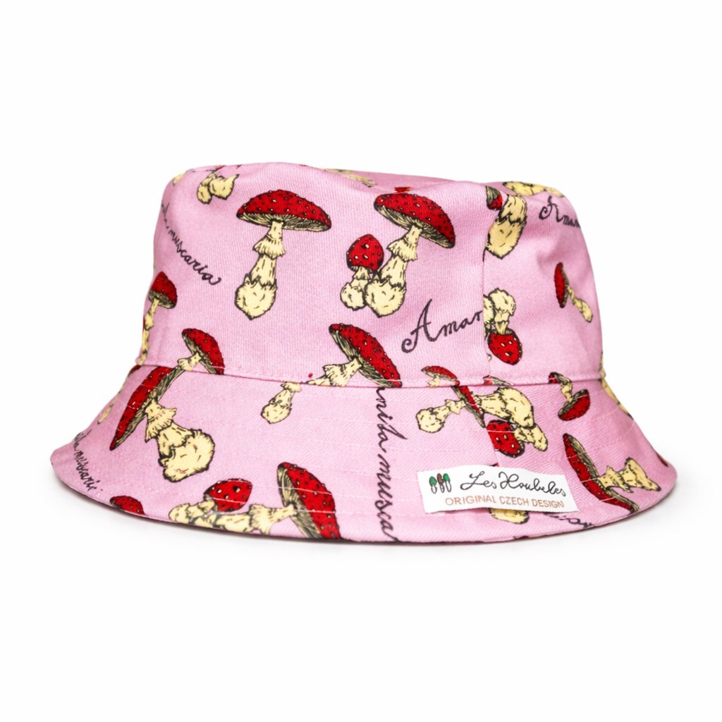 Originální klobouk, který zdobí desítky malých a větších muchomůrek. Látka vznikla na základě designu Les Houbeles a klobouček je šitý v České republice. Klobouk je oboustranný - z jedné strany ho zdobí potisk muchomůrek, z druhé strany je opatřen jednobarevnou látkou. Oba typy látek jsou 100% bavlněné. Tato praktická pomůcka vaše děti ochrání před sluníčkem i padajícím jehličím.
