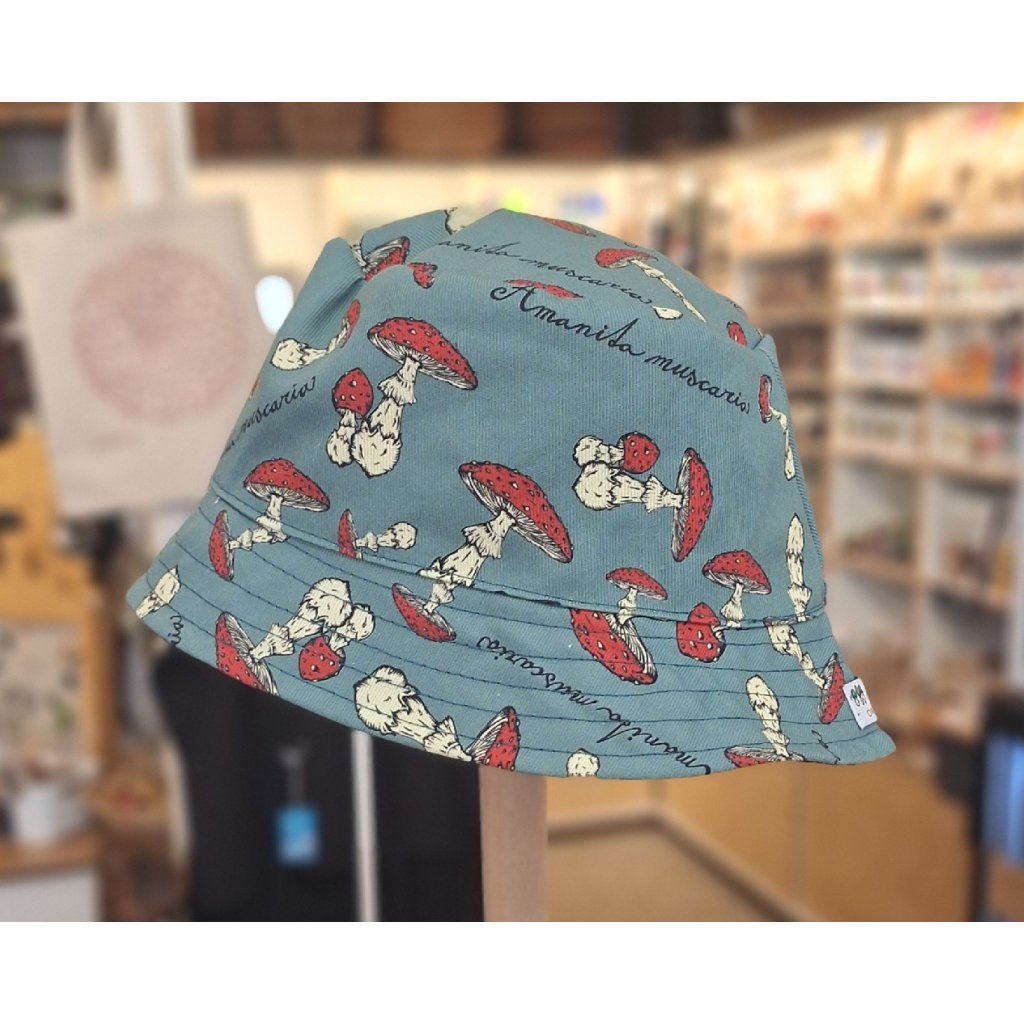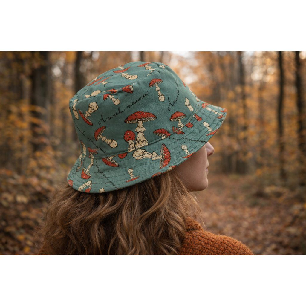 Originální klobouk, který zdobí desítky malých a větších muchomůrek. Látka vznikla na základě designu Les Houbeles a klobouček je šitý v České republice. Klobouk je oboustranný - z jedné strany ho zdobí potisk hub, z druhé strany je opatřen jednobarevnou látkou. Oba typy látek jsou 100% bavlněné. Tato praktická pomůcka ochrání před sluníčkem i padajícím jehličím.