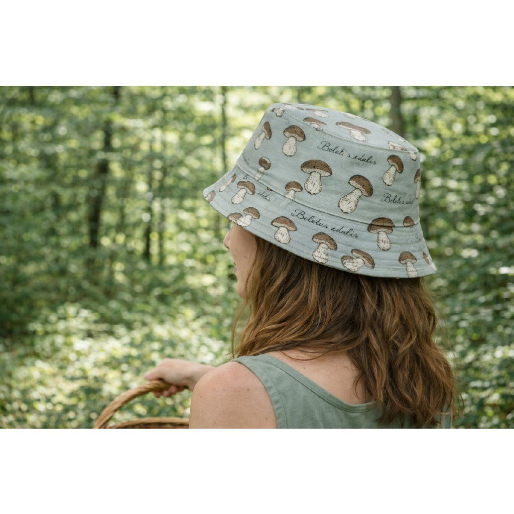 Originální klobouk, který zdobí desítky malých a větších hříbků. Látka vznikla na základě designu Les Houbeles a klobouček je šitý v České republice. Klobouk je oboustranný - z jedné strany ho zdobí potisk hříbků, z druhé strany je opatřen jednobarevnou látkou. Oba typy látek jsou 100% bavlněné. Tato praktická pomůcka ochrání před sluníčkem i padajícím jehličím.