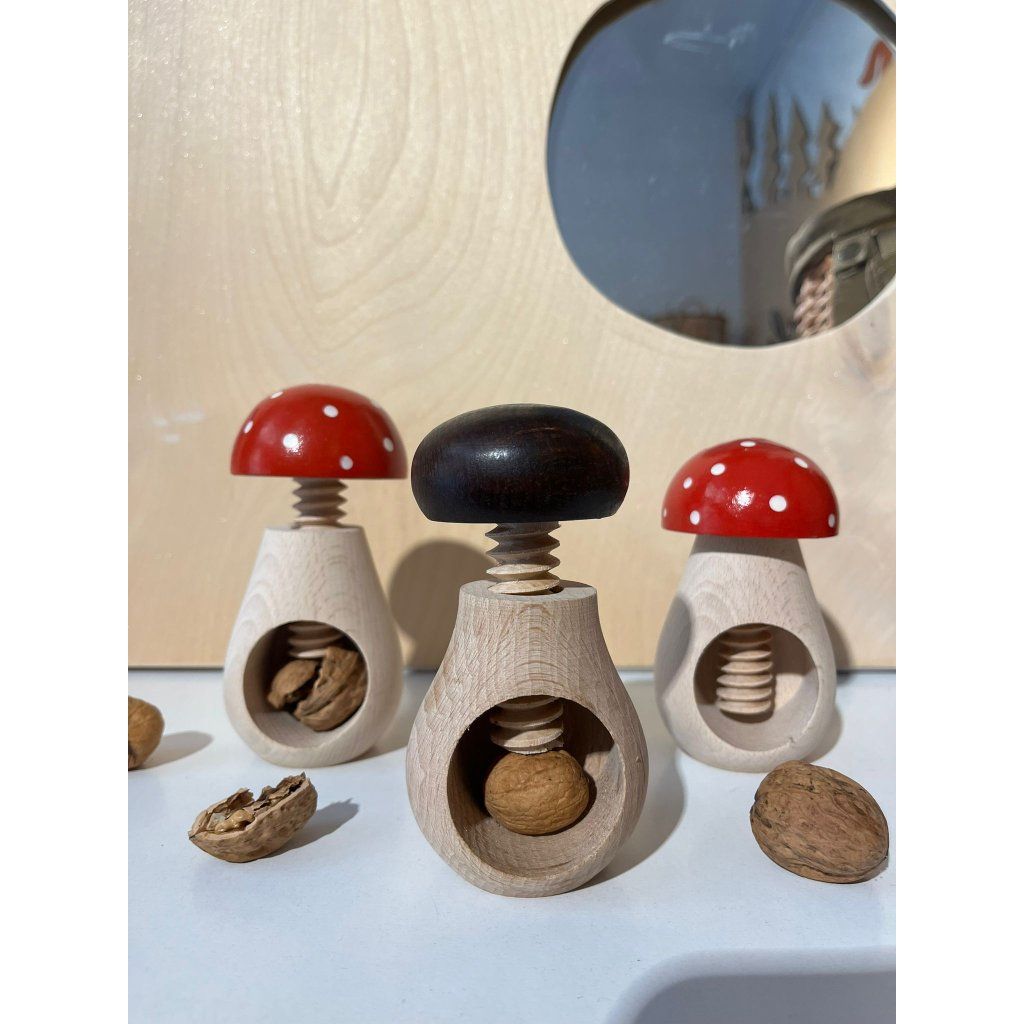 Originální dřevěný louskáček na ořechy ve tvaru hříbku zaujme na první pohled a potěší každého milovníka lesa, hub i poctivého designu. Praktický pomocník do kuchyně, který zároveň funguje jako stylová dekorace.
