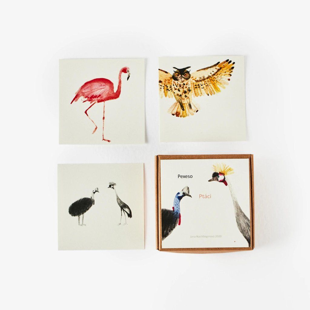 Objevte krásu ptačí říše s autorským pexesem od Jany Nachlingerové. Jemné ilustrace a přírodní barevnost potěší děti i dospělé a promění klasickou hru v estetický zážitek.