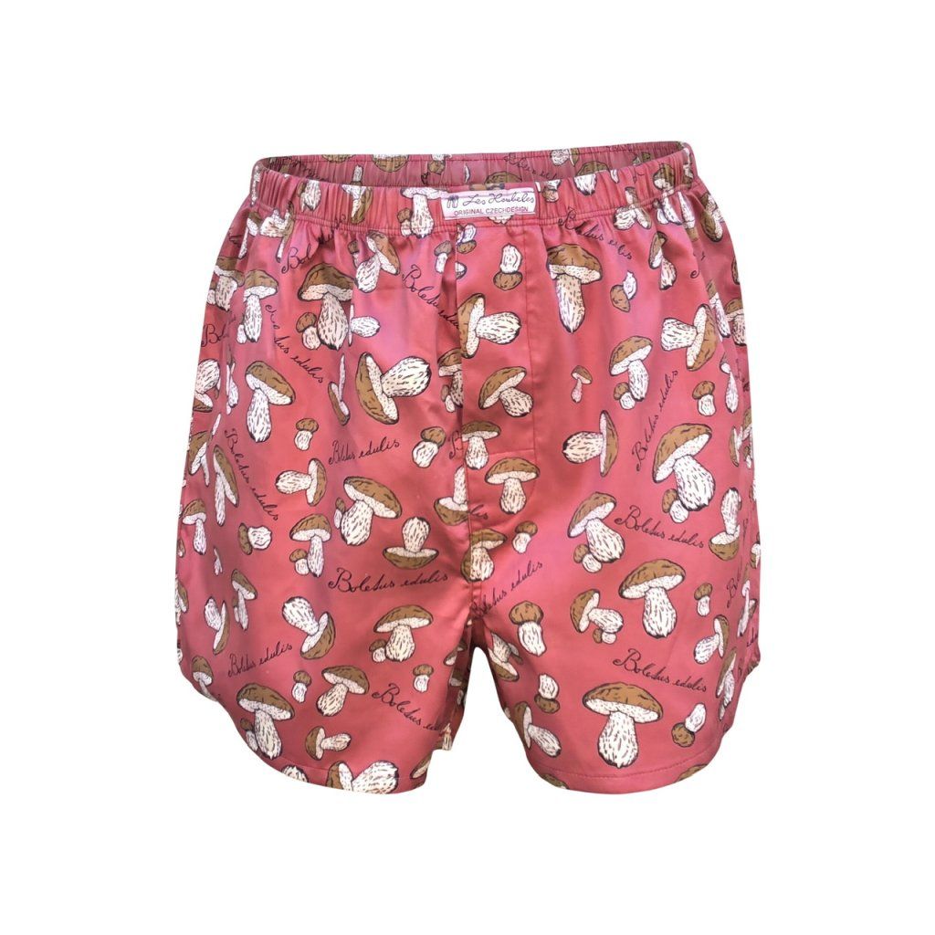 Les Houbeles, saténové trenýrky, potisk hříbky, vínové