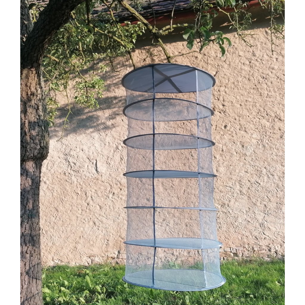 Praktická 6patrová závěsná sušící síť je ideální pro sušení hub, bylinek, ovoce či menší zeleniny. Síť se rozloží a složí během několika sekund, je skladná a nenáročná na prostor – vhodná i na menší balkon nebo nad kamna.